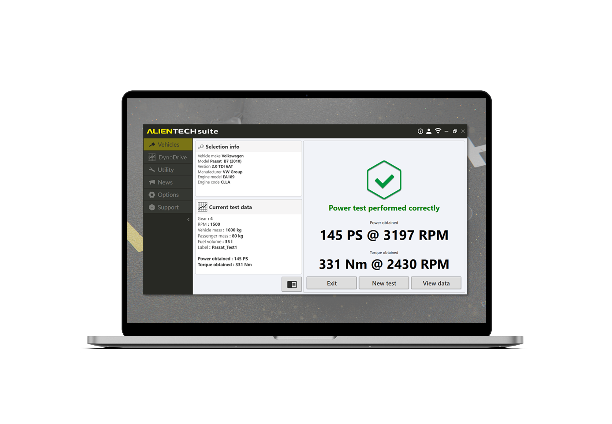 DynoDrive is an advanced feature, exclusive to Alientech Suite and KESS3, which allows for calculating and verifying performance while driving a vehicle. Through the OBD diagnostic port and data acquisition from the integrated GPS module, DynoDrive provides power and torque values of a car that can be exported and compared endlessly on your reserved area.