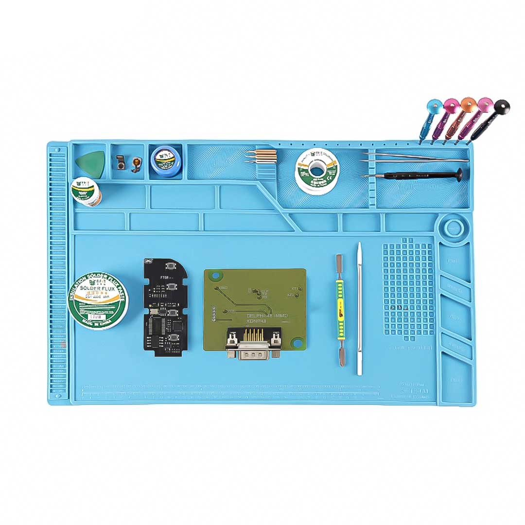 This product is used for IC products repairing (suitable for some models). It is made of high-quality silicone insulation for high temperature resistance. With 4.0mm thick-ness,it has several card slots for placing various tools. The storage groove has mag-netic adsorption, where small screws can be placed to prevent loss.