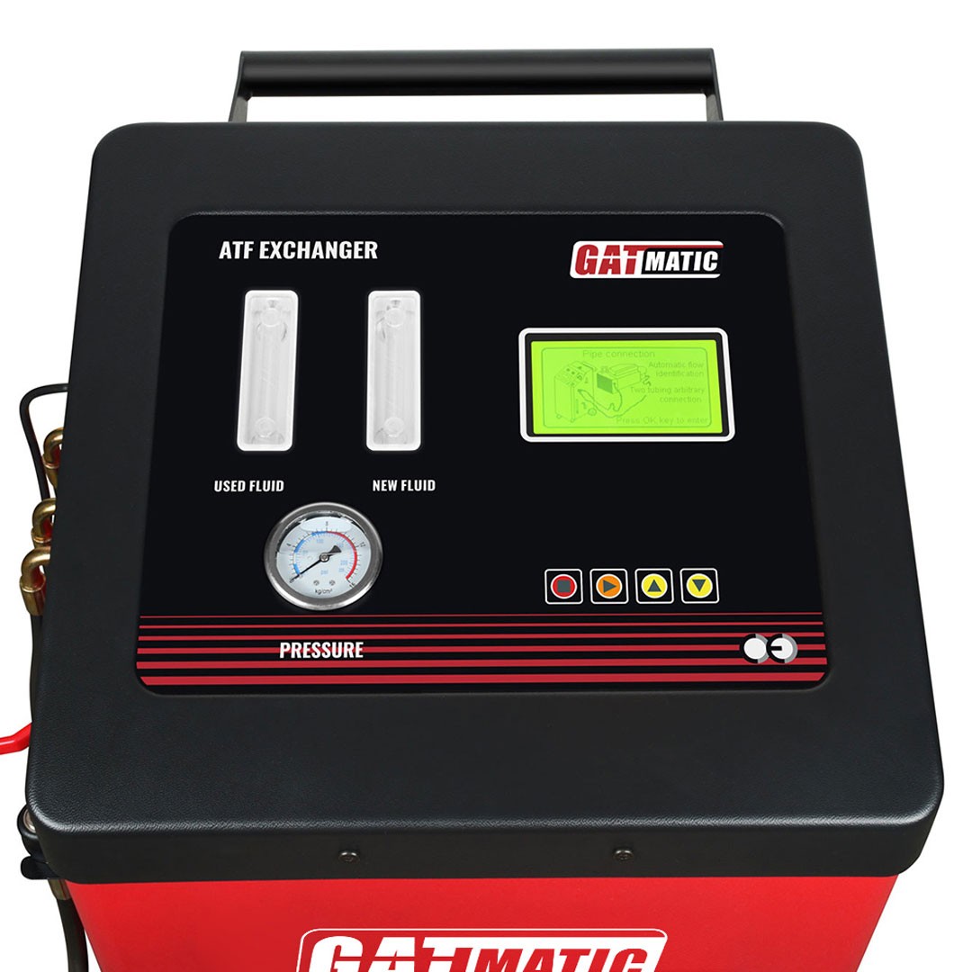 GATmatic GT-413 connects through transmission cooler lines and provides a clean, environmentally friendly, and systematic approach to servicing automatic transmissions. The unit will flush virtually all of the old transmission fluid and replace it with the new fluid while the engine is running. It completes the fluid exchange faster and more efficiently because of its unique interface and easy-to-use design.
