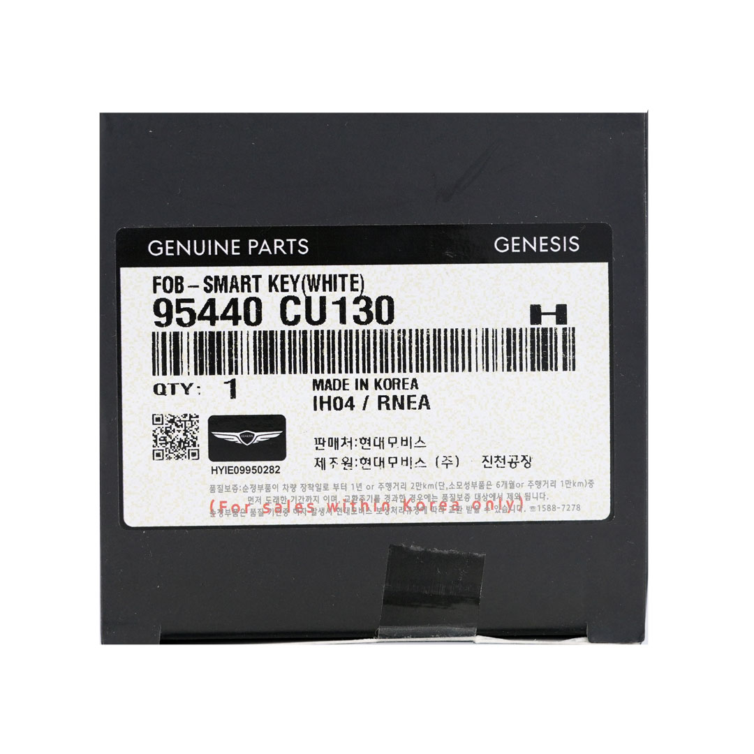 Buttons: 8Frequency: 433MHzColor: WhitePanic: YesRemote Blade: Not IncludedManufacturer: Genuine / OEMCondition: NewOEM Part Number: 95440-CU130Battery: CR2450Proximity / Smart / Keyless Go: YesReusable: NoFCC ID: TQ8-FOB-4F53UIC: 5074A-FOB4F53URegion / Market: KoreaTransponder - ID: HITAG 3 - ID47 NCF29A1X