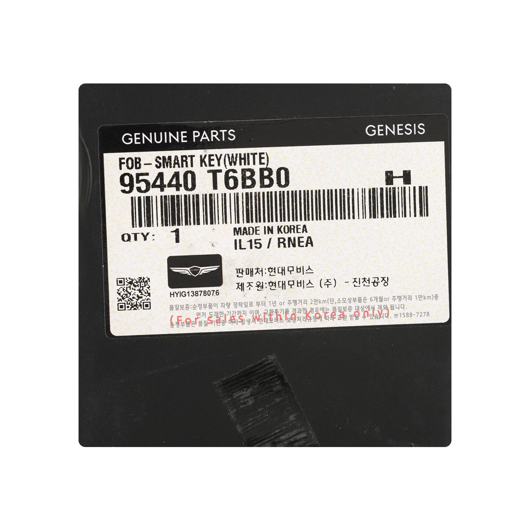 Buttons: 5Frequency: 433MHzColor: WhitePanic: YesRemote Blade: Not IncludedManufacturer: Genuine / OEMCondition: NewOEM Part Number: 95440-T6BB0Battery: CR2450Proximity / Smart / Keyless Go: YesReusable: NoTransponder - ID: HITAG 128-bits AES ID4A NCF29A1MRegion / Market: Korea