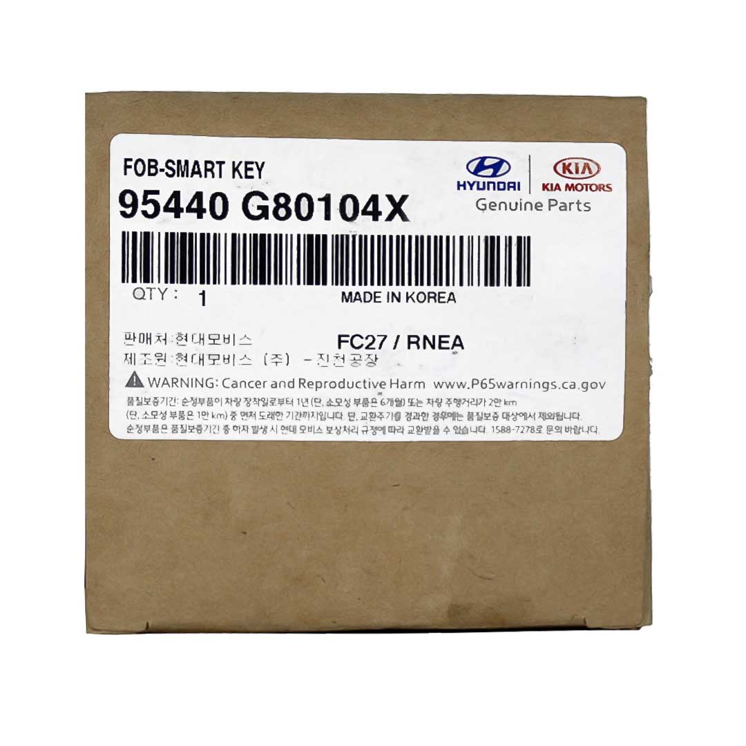 Manufacturer: Genuine / OEMOEM Part Number: 95440-G80104XButtons: 4Frequency: 433MHzColor: Black And ChromeCondition: NewProximity / Smart / Keyless Go: YesRemote Blade: Not IncludedPanic: YesBattery: CR2032Transponder - ID: HITAG 3 - ID47 NCF29A1XRegion / Market: Korea