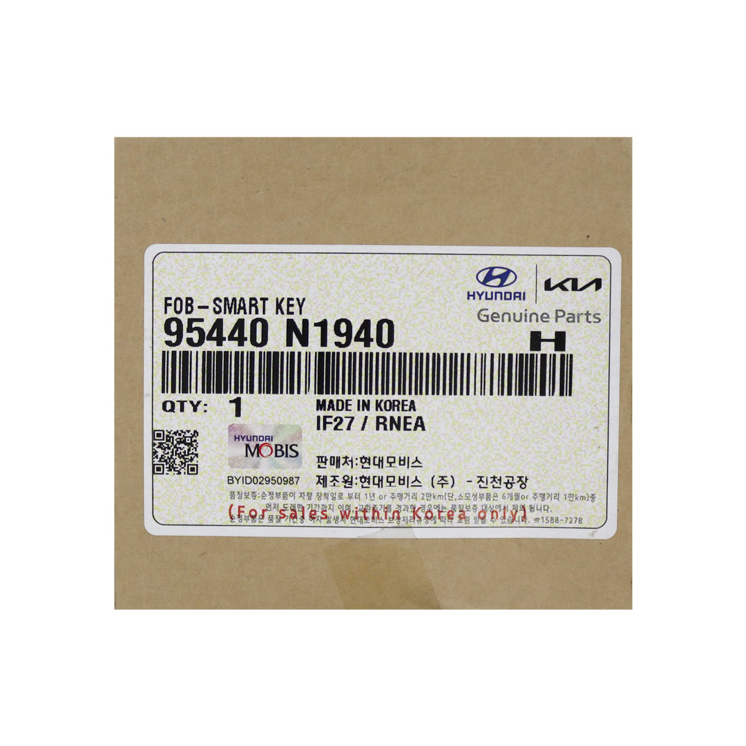Buttons: 5Frequency: 433MHzColor: SilverPanic: YesRemote Blade: Not IncludedManufacturer: Genuine / OEMCondition: NewOEM Part Number: 95440-N1940Battery: CR2450Proximity / Smart / Keyless Go: YesFCC ID: TQ8-FOB-4F61U43IC: 6074A-FOP4F61U43Region / Market: KoreaTransponder - ID: HITAG 128-bits AES ID4A NCF29AXM