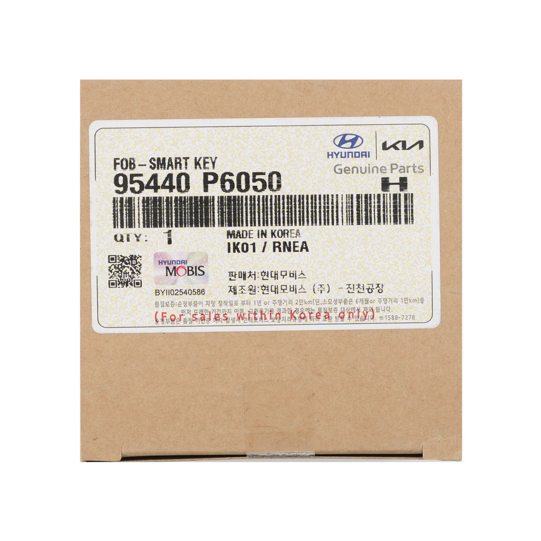 Buttons: 5Frequency: 433MHzColor: SilverPanic: YesRemote Blade: Not IncludedManufacturer: Genuine / OEMCondition: NewOEM Part Number: 95440-P6050Battery: CR2450Proximity / Smart / Keyless Go: YesReusable: NoFCC ID: TQ8-FOB-4F89U44IC: 5074A-FOB4F89U44Region / Market: USA & CanadaTransponder - ID: HITAG 128-bits AES ID4A NCF29AXM