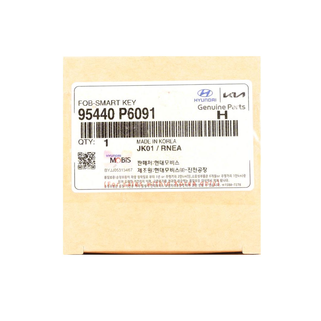 Buttons: 7Frequency: 433MHzColor: SilverPanic: YesRemote Blade: Not IncludedManufacturer: Genuine / OEMCondition: NewOEM Part Number: 95440-P6091Battery: CR2450Proximity / Smart / Keyless Go: YesReusable: NoTransponder - ID: HITAG 128-bits AES ID4A NCF29AXM