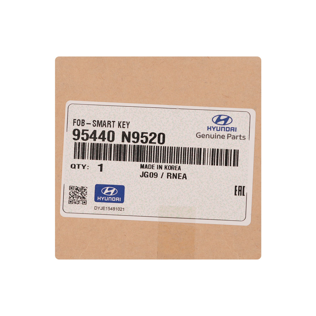 Buttons: 3Frequency: 433MHzColor: SilverPanic: NoRemote Blade: Not IncludedManufacturer: Genuine / OEMCondition: NewOEM Part Number: 95440-N9520Battery: CR2450Proximity / Smart / Keyless Go: YesReusable: NoRegion / Market: Europe & General Transponder - ID: HITAG 128-bits AES ID4A NCF29AXM