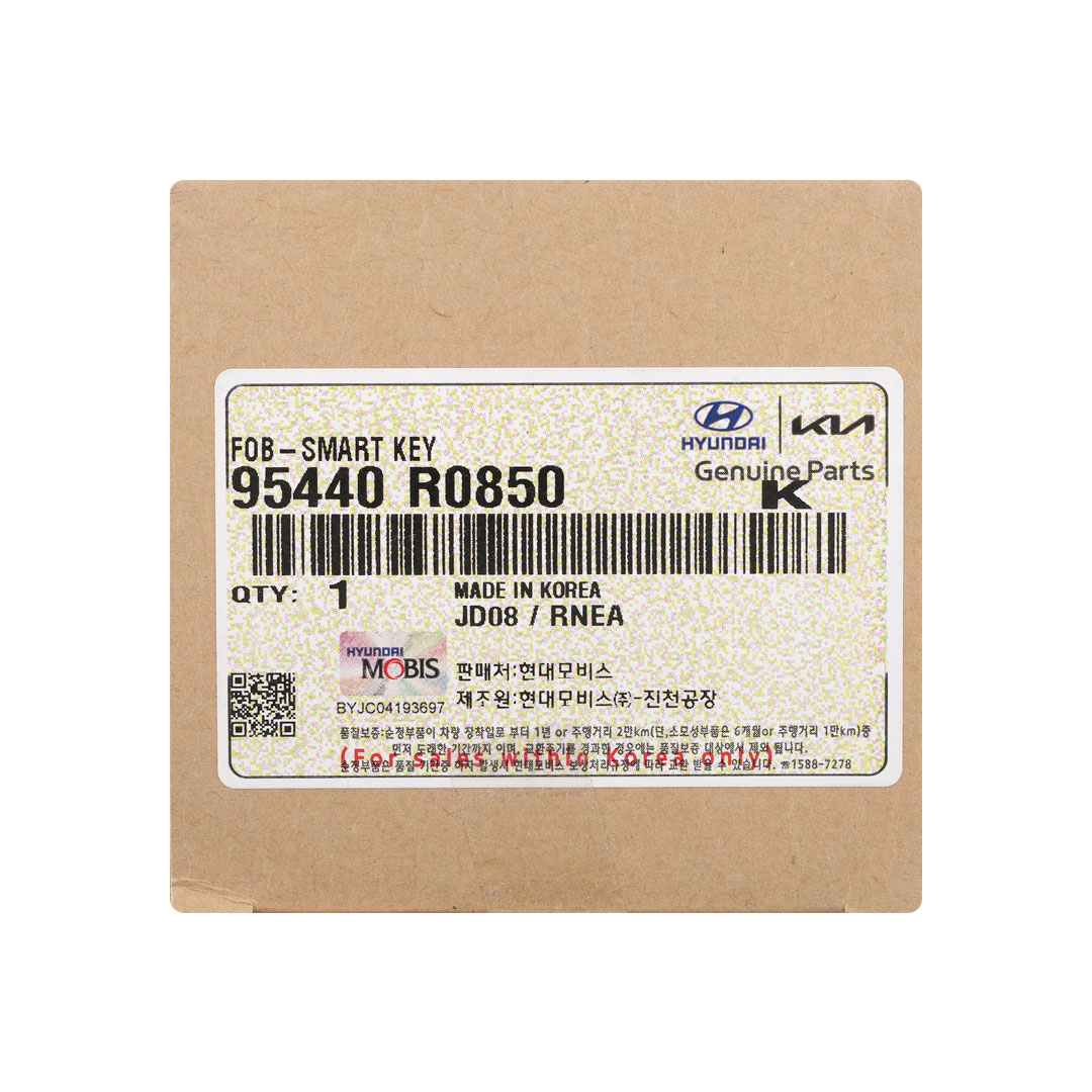 Buttons: 9Frequency: 433MHzColor: Black And ChromePanic: YesRemote Blade: Not IncludedManufacturer: Genuine / OEMCondition: NewOEM Part Number: 95440-R0850Battery: CR2450Proximity / Smart / Keyless Go: Yes