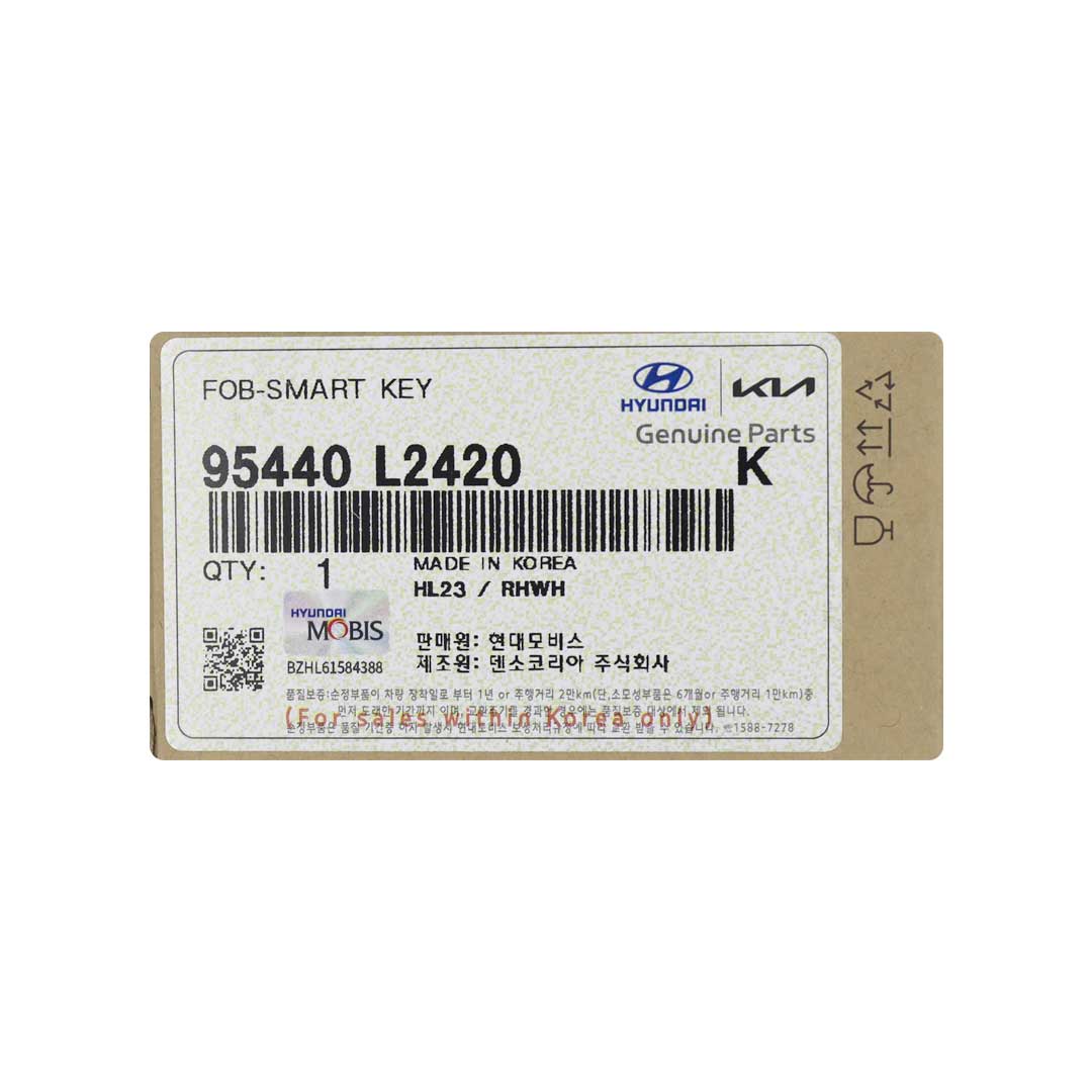 Buttons: 5Frequency: 433MHzColor: Black And ChromePanic: YesRemote Blade: Not IncludedManufacturer: Genuine / OEMCondition: NewOEM Part Number: 95440-L2420Battery: CR2032Proximity / Smart / Keyless Go: YesFCC ID: FD00790Transponder - ID: HITAG 128-bits AES ID4A NCF29A1MRegion / Market: Korea