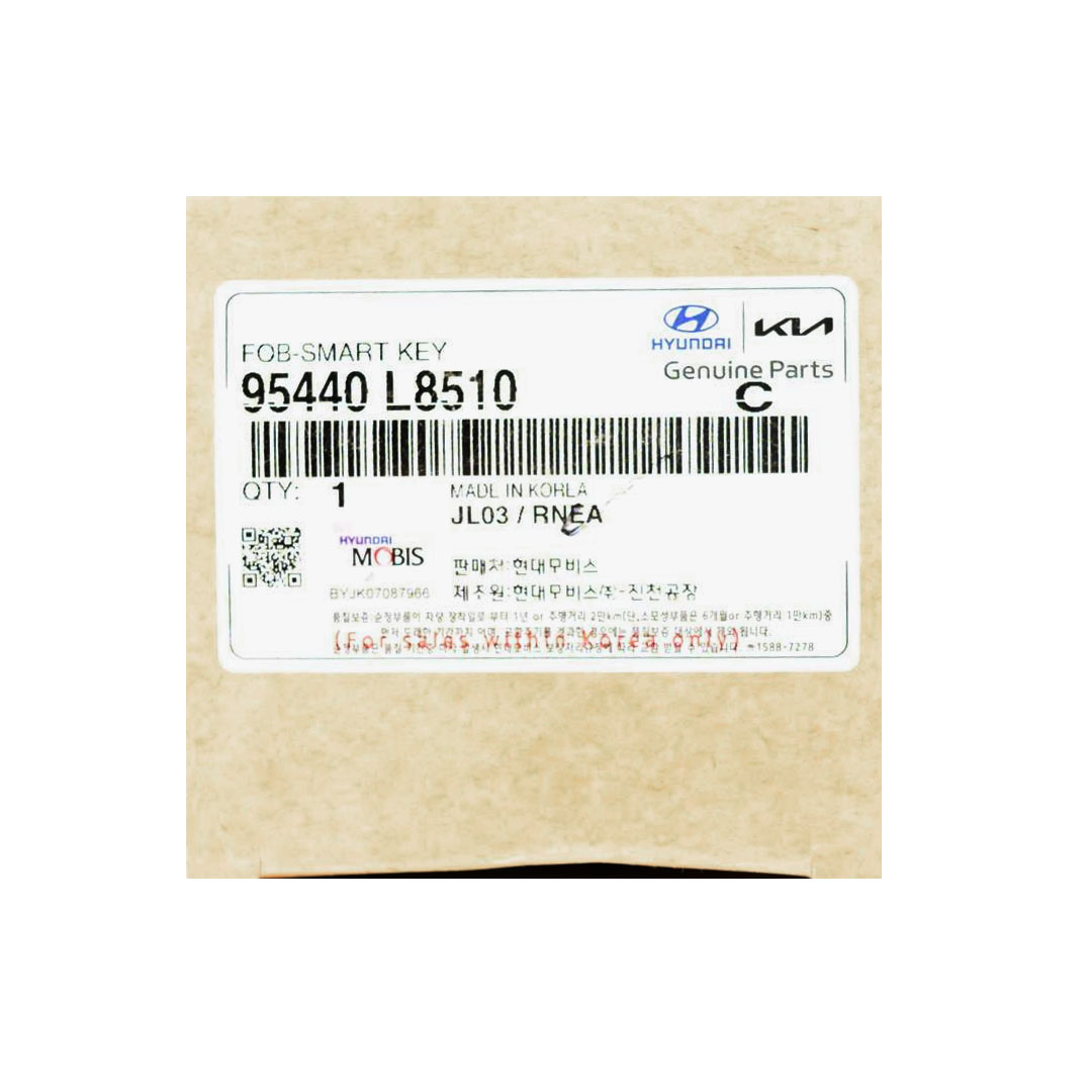 Buttons: 5Frequency: 433MHzColor: BlackPanic: YesRemote Blade: Not IncludedManufacturer: Genuine / OEMCondition: NewOEM Part Number: 95440-L8510Battery: CR2450Proximity / Smart / Keyless Go: YesTransponder - ID: HITAG 128-bits AES ID4A NCF29AXM