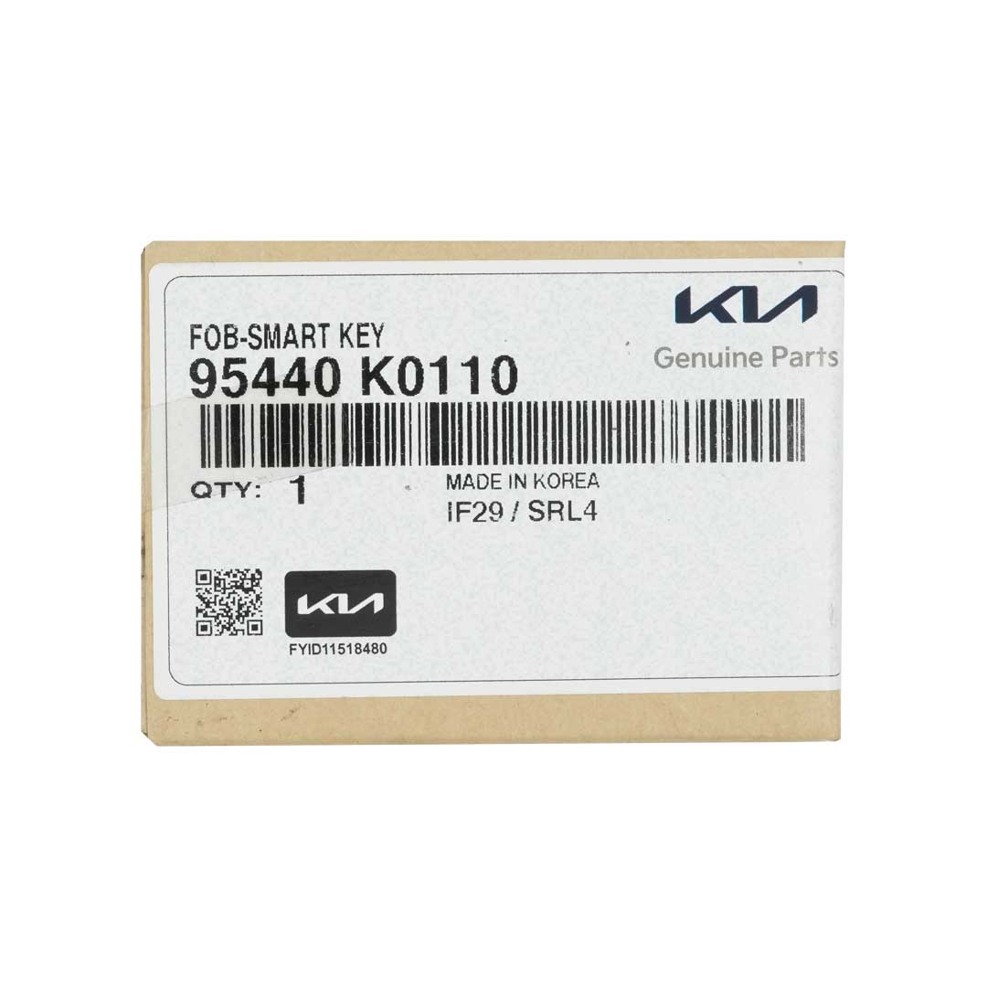 Buttons: 3Frequency: 433MHzColor: Black And ChromePanic: NoRemote Blade: Not IncludedManufacturer: Genuine / OEMCondition: NewOEM Part Number: 95440-K0110Battery: CR2032Proximity / Smart / Keyless Go: YesFCC ID: SVI-SKFGE03Region / Market: Europe & GeneralTransponder - ID: HITAG 128-bits AES ID4A NCF29AXM