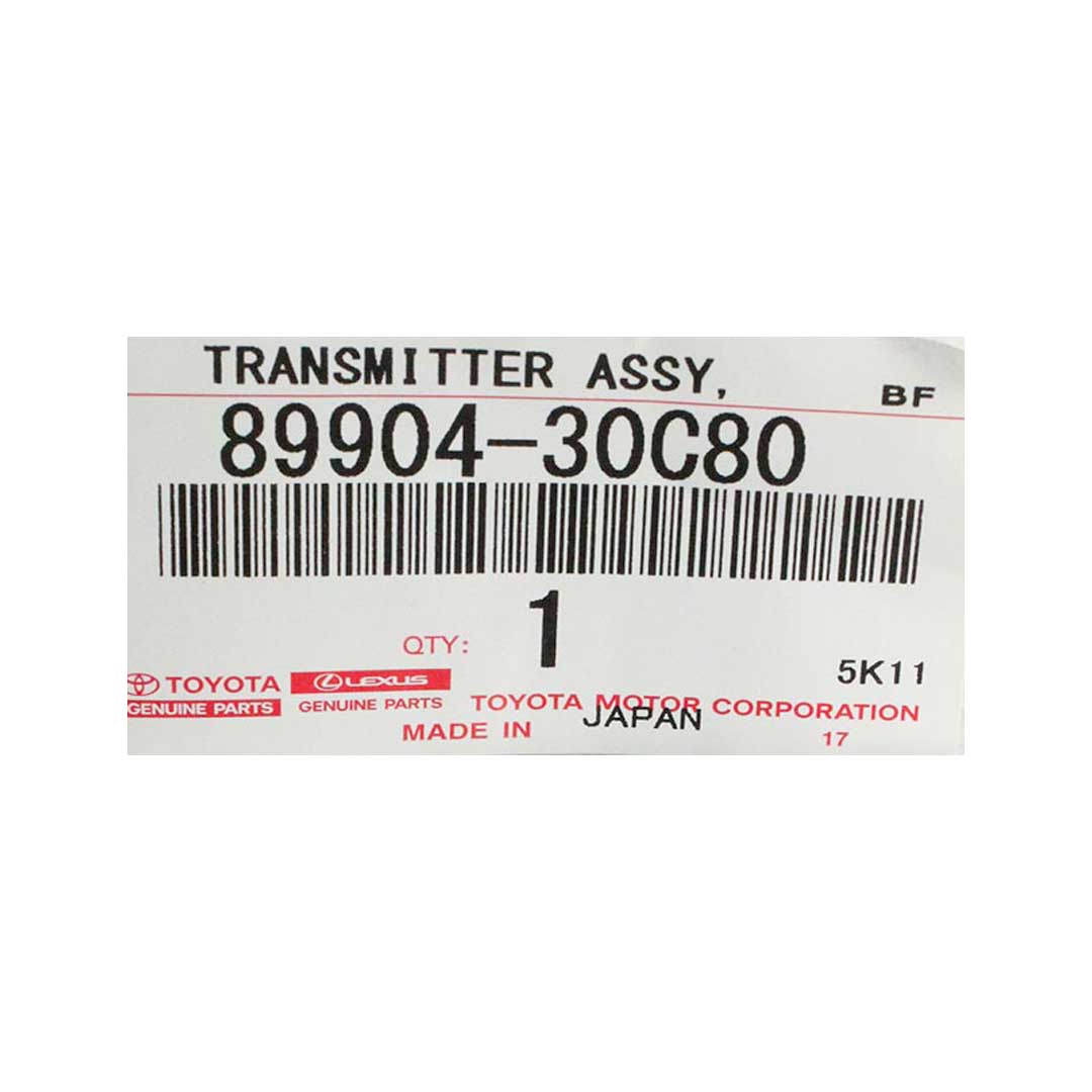 Buttons: 4Panic: YesColor: BlackOEM Part Number: 89904-30C80Compatible Part Number: 89904-30J50Manufacturer: Genuine / OEMCondition: NewProximity / Smart / Keyless Go: YesFrequency: 433MHzFCC ID: BC4EKRemote Blade: Not IncludedPage 4: 88Transponder - ID: 8A Texas Crypto 128-bits AES