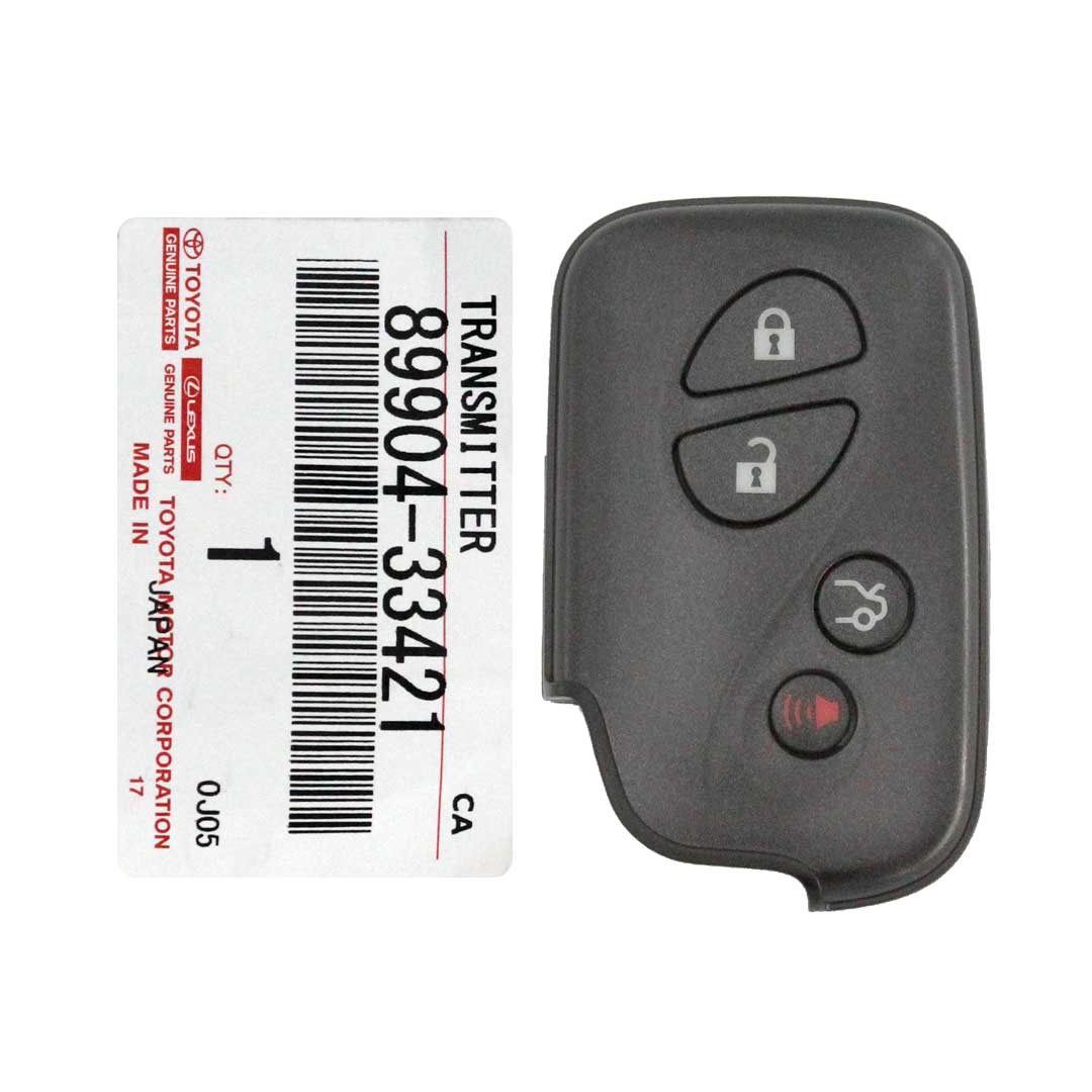 OEM Part Number: 89904-33421Condition: NewFrequency: 433MHzButtons: 4Panic: YesColor: BlackManufacturer: Genuine / OEMProximity / Smart / Keyless Go: YesRemote Blade: Not IncludedPage 1: 98Transponder - ID: Texas Crypto DST 80 bits TMS37126Region / Market: Korea