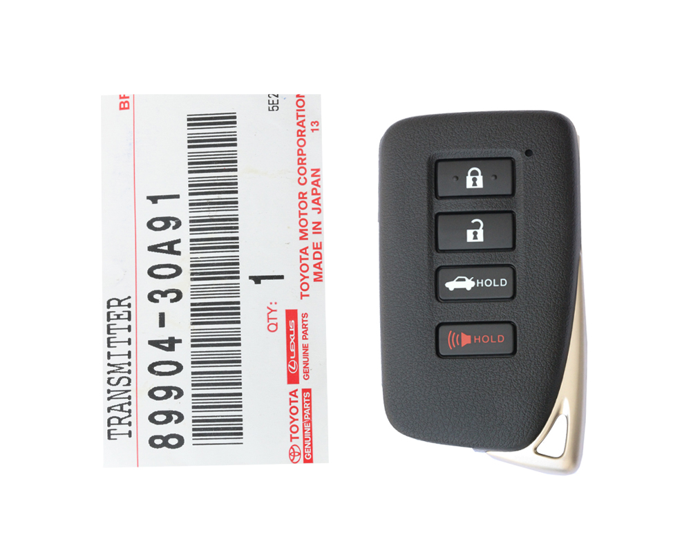 OEM Part Number: 89904-30A91Buttons: 4Panic: YesColor: BlackFrequency: 315MHzManufacturer: Genuine / OEMCondition: NewProximity / Smart / Keyless Go: YesFCC ID: HYQ14FBARemote Blade: Not IncludedBattery: CR2032Page 4: 88Board: 231451-0020Transponder - ID: 8A Texas Crypto 128-bits AESIC: 1551A-14FBA