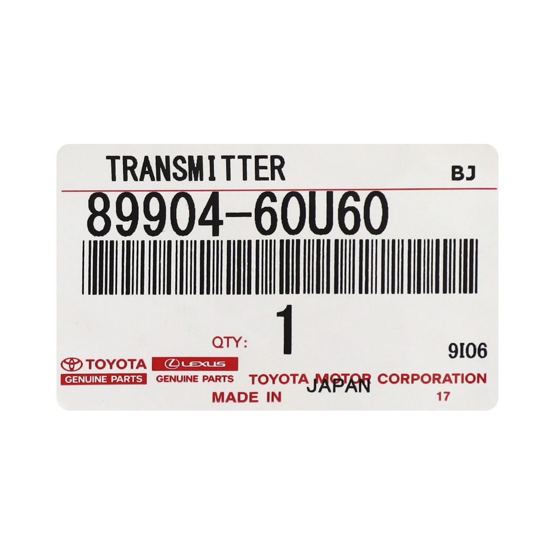 Buttons: 4Frequency: 433MHzColor: Black And ChromePanic: YesRemote Blade: Not IncludedManufacturer: Genuine / OEMCondition: NewOEM Part Number: 89904-60U60Page 4: AAProximity / Smart / Keyless Go: YesBattery: CR2032Compatible Part Number: 89904-60P30