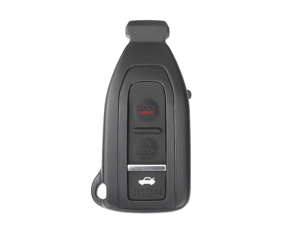 Buttons: 3Panic: YesColor: BlackFrequency: 315MHzCondition: NewManufacturer Part Number: 89994-50241Manufacturer: Genuine/OEMTransponder ID: 4D-68Smart: YesFCC ID: HYQ12BZERemote Blade: Not IncludedBattery: CR1632IC: 1551A-12BZE