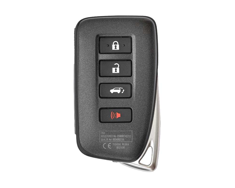 OEM Part Number: 89904-78650Buttons: 4Panic: YesFrequency: 433MHzColor: BlackManufacturer: Genuine / OEMProximity / Smart / Keyless Go: YesCondition: NewRemote Blade: Not IncludedBattery: CR2032FCC ID: BG1EKPage 4: A8Transponder - ID: 8A Texas Crypto 128-bits AES