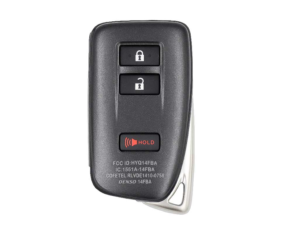 Color: BlackCondition: NewButtons: 3Frequency: 315MHzOEM Part Number: 89904-78460Manufacturer: Genuine / OEMPanic: YesFCC ID: HYQ14FBARemote Blade: Not IncludedBattery: CR2032Page 4: A8Proximity / Smart / Keyless Go: YesTransponder - ID: 8A Texas Crypto 128-bits AESIC: 1551A-14FBA