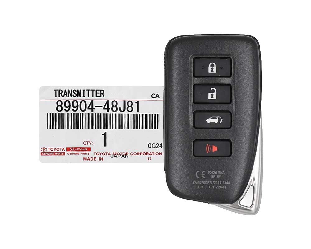 Manufacturer: Genuine / OEMButtons: 4Frequency: 433MHzColor: BlackCondition: NewOEM Part Number: 89904-48J81FCC ID: BP1EWProximity / Smart / Keyless Go: YesPanic: YesRemote Blade: Not IncludedPage 4: A9Transponder - ID: 8A Texas Crypto 128-bits AESCompatible Part Number: 89904-78G80