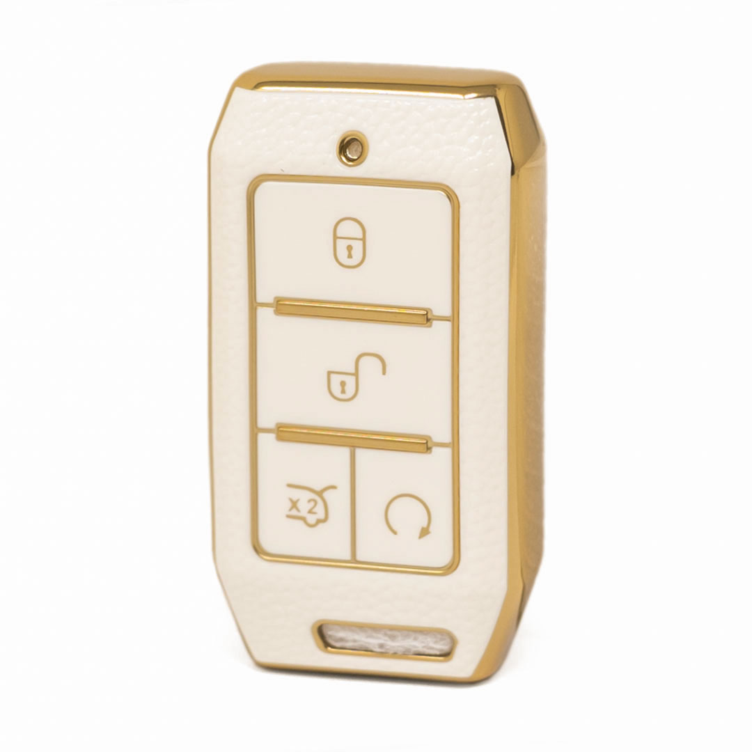 Nano High Quality Gold Leather Cover For BYD Remote Key 4 Buttons White Color BYD-C13J