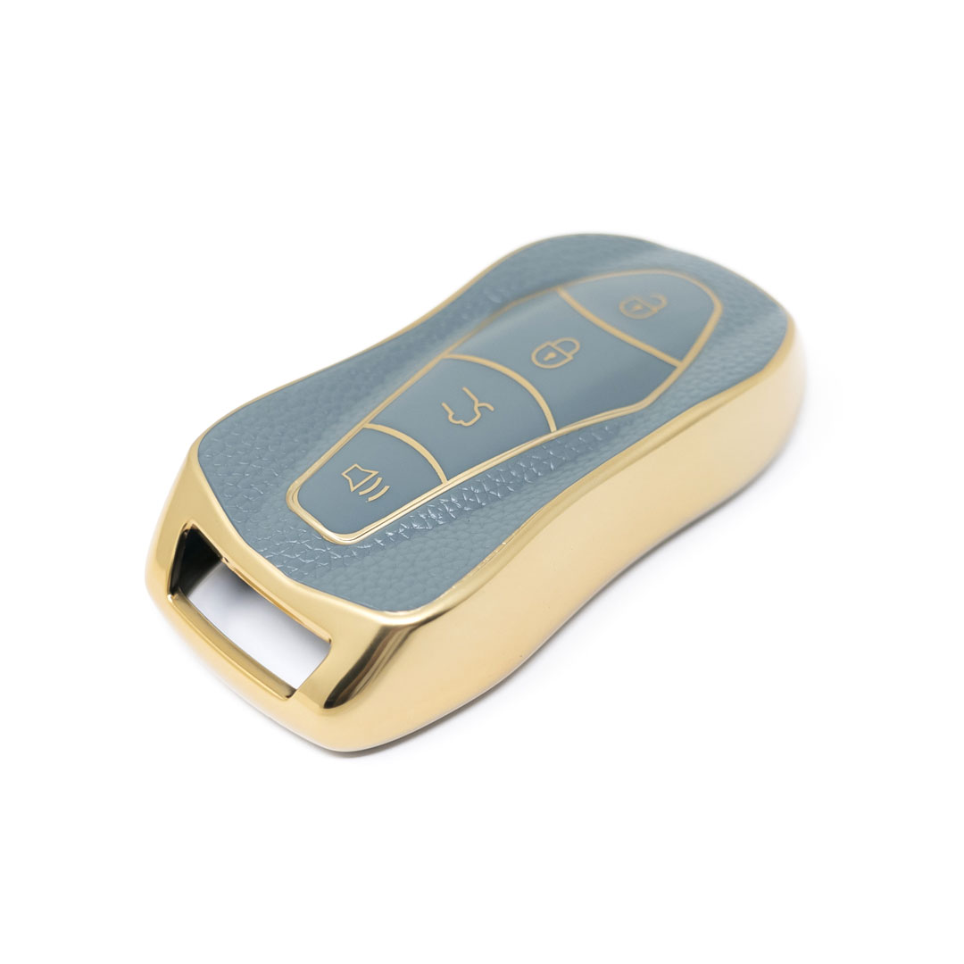New Aftermarket Nano High Quality Gold Leather Cover For Geely Remote Key 4 Buttons Gray Color GL-C13J