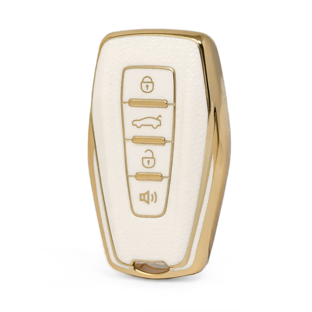 New Aftermarket Nano High Quality Gold Leather Cover For Geely Remote Key 4 Buttons White Color GL-B13J4B
