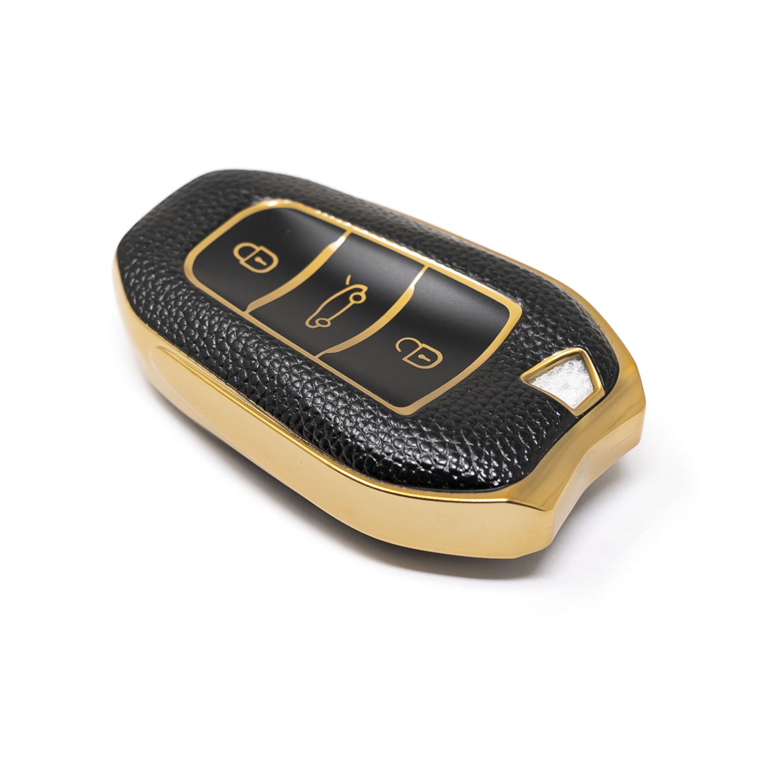 New Aftermarket Nano High Quality Gold Leather Cover For Peugeot Remote Key 3 Buttons Black Color PG-A13J