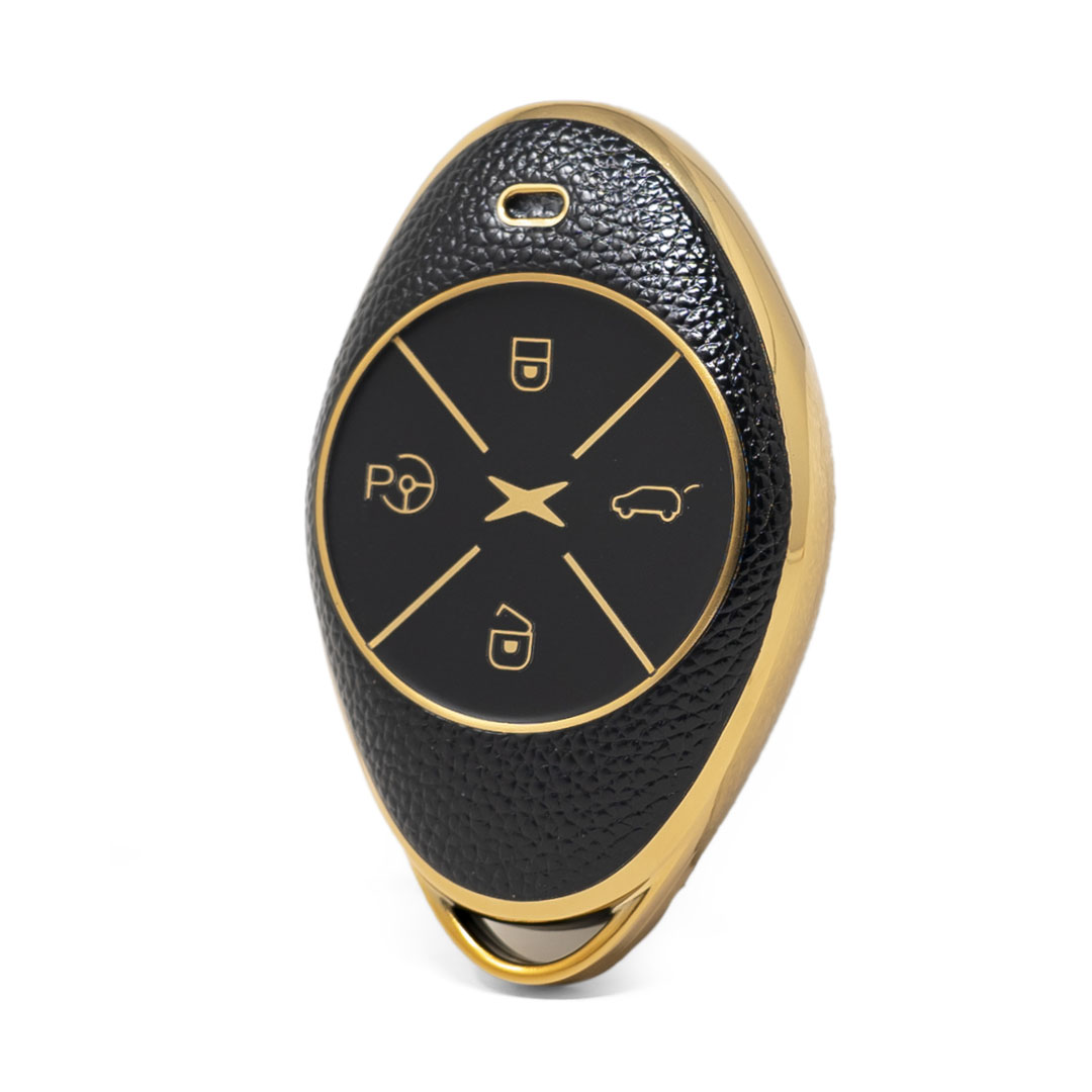 Nano High Quality Gold Leather Cover For Xpeng Remote Key 4 Buttons Black Color XP-B13J