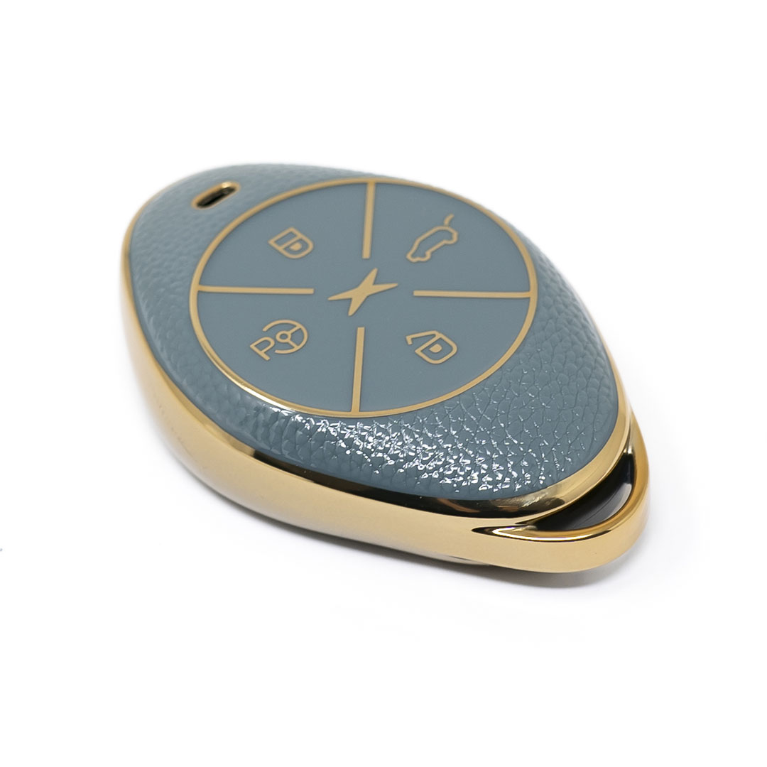 New Aftermarket Nano High Quality Gold Leather Cover For Xpeng Remote Key 4 Buttons Gray Color XP-B13J