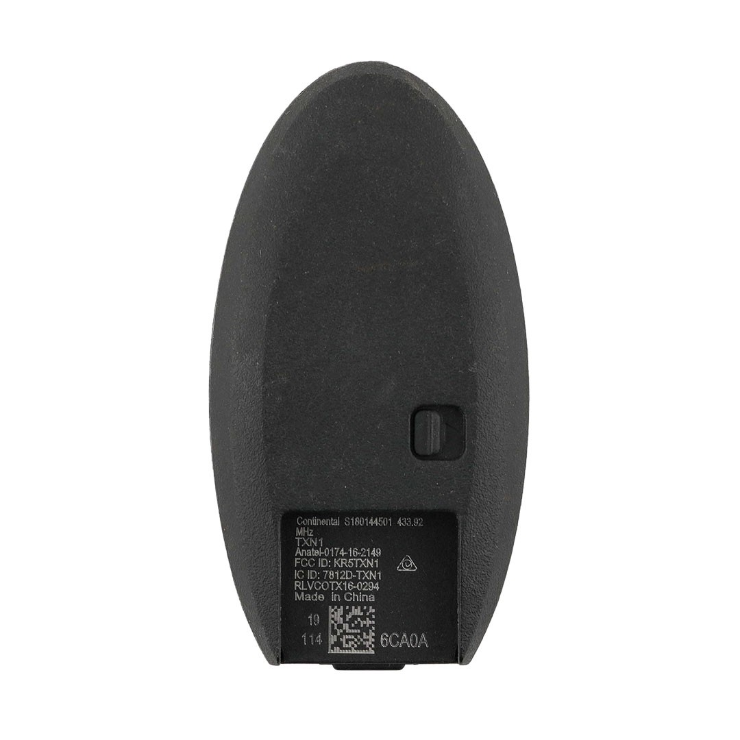 Buttons: 3Frequency: 433.92MHzColor: BlackPanic: NoFCC ID: KR5TXN1Remote Blade: Not IncludedManufacturer: Genuine / OEMCondition: UsedOEM Part Number: 285E3-6CA0ABattery: CR2032Unlocked: YesProximity / Smart / Keyless Go: YesIC: 7812D-TXN1Continental: S180144501
