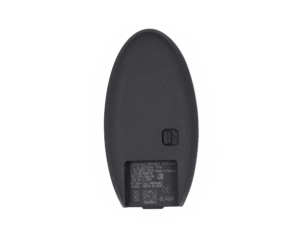 Buttons: 5Frequency: 433MHzColor: BlackPanic: YesFCC ID: KR5TXN4Transponder ID: HITAG AESRemote Blade: Not IncludedManufacturer: Genuine / OEMCondition: UsedOEM Part Number: 285E3-6LA6ABattery: CR2032Proximity / Smart / Keyless Go: YesUnlocked: YesRegion / Market: Middle east & USA & CanadaIC: 7812D-TXN4Continental: S180144803Compatible Part Number: 285E3-6CA6A