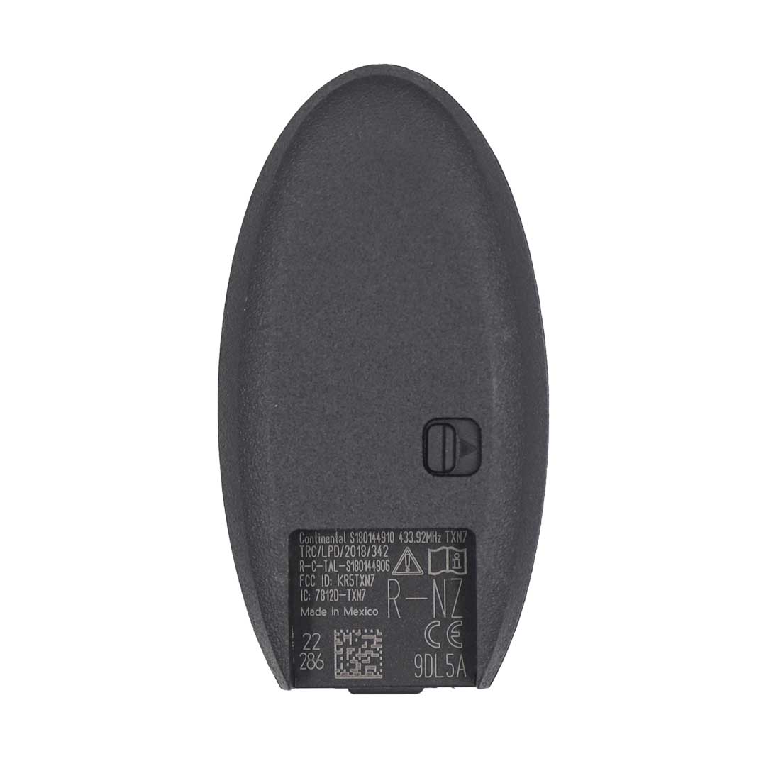 Buttons: 5Frequency: 433MHzColor: BlackPanic: YesFCC ID: KR5TXN7Remote Blade: Not IncludedManufacturer: Genuine / OEMCondition: NewOEM Part Number: 285E3-9DL5ABattery: CR2032Proximity / Smart / Keyless Go: YesIC: 1712D-TXN7Region / Market: USA & CanadaTransponder - ID: HITAG 128-bits AES ID4A NCF29A1M