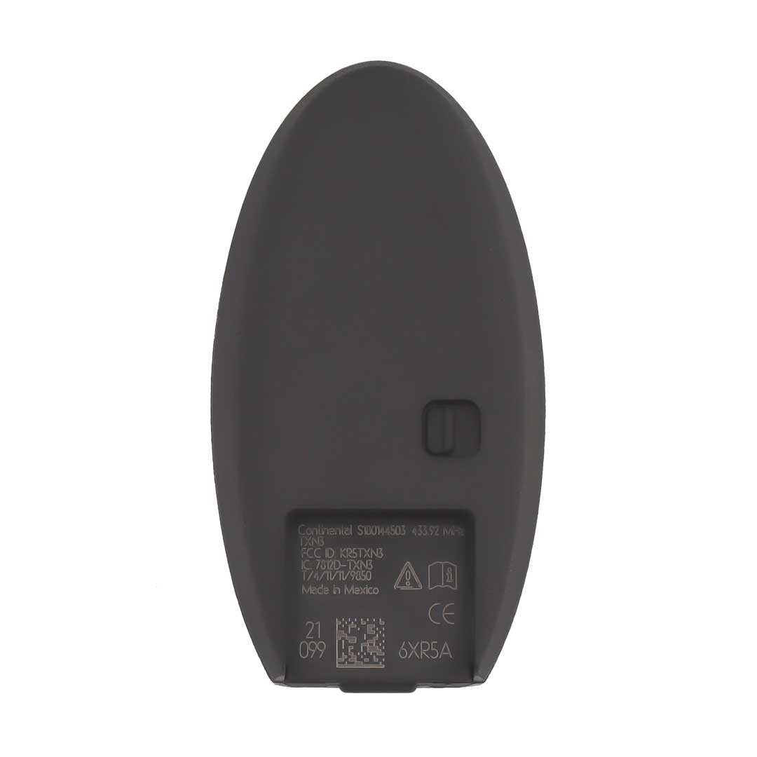 Buttons: 4Frequency: 433MHzColor: BlackManufacturer: Genuine / OEMCondition: NewOEM Part Number: 285E3-6XR5ARemote Blade: Not IncludedFCC ID: KR5TXN3Proximity / Smart / Keyless Go: YesRegion / Market: Middle east & USA & CanadaIC: 7812D-TXN3Panic: YesContinental: S180144503Transponder - ID: HITAG 128-bits AES ID4A NCF29A1MBattery: CR2032Compatible Part Number: 285E3-6TA5B