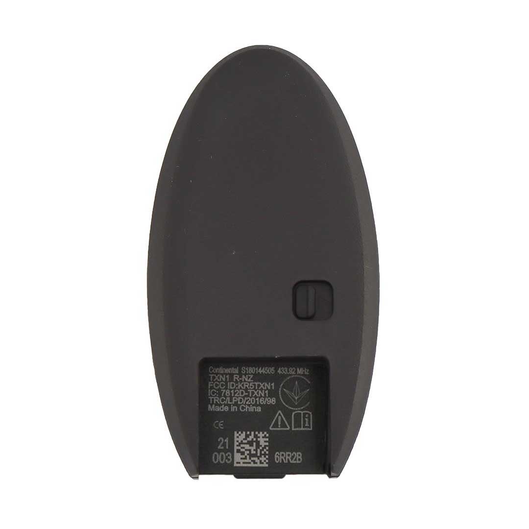 Buttons: 3Frequency: 433MHzColor: BlackPanic: NoRemote Blade: Not IncludedManufacturer: Genuine / OEMCondition: NewOEM Part Number: 285E3-6RR2B / 285E3-6RR2AProximity / Smart / Keyless Go: YesBattery: CR2032Transponder - ID: HITAG 128-bits AES ID4A NCF29A1MFCC ID: KR5TXN1Region / Market: Middle east & General & Europe