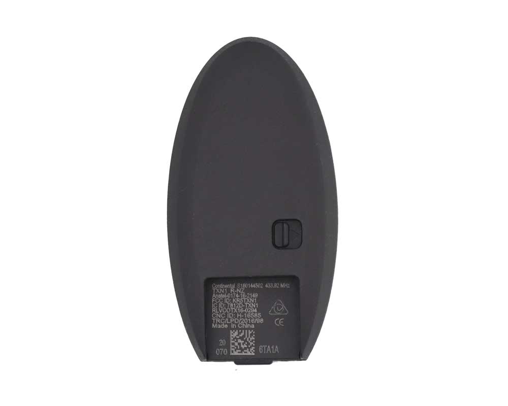 Buttons: 3Frequency: 433MHzColor: BlackPanic: YesFCC ID: KR5TXN1Remote Blade: Not IncludedManufacturer: Genuine / OEMCondition: NewOEM Part Number: 285E3-6TA1ABattery: CR2032Proximity / Smart / Keyless Go: YesRegion / Market: Middle east & USA & CanadaIC: 7812D-TXN1Compatible Part Number: 285E3-6XR1ATransponder - ID: HITAG 128-bits AES ID4A NCF29A1M