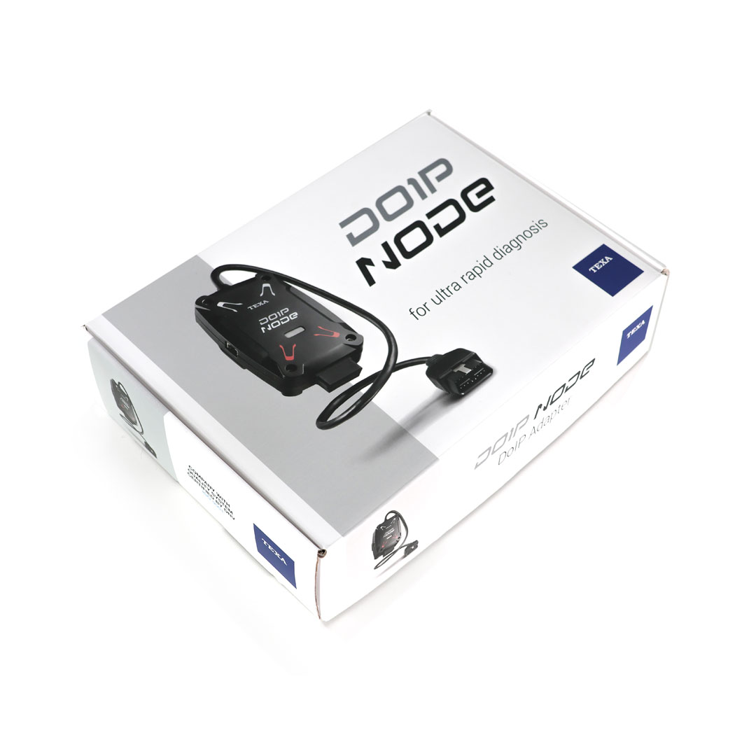 DoIP NODE is the multi-brand adapter developed by TEXA, which allows carrying out high-speed DoIP (Diagnosis Over Internet Protocol) diagnostic operations on vehicles equipped with an Ethernet communication BUS, a new architecture that manufacturers are beginning to implement along with the traditional CAN-BUS line.