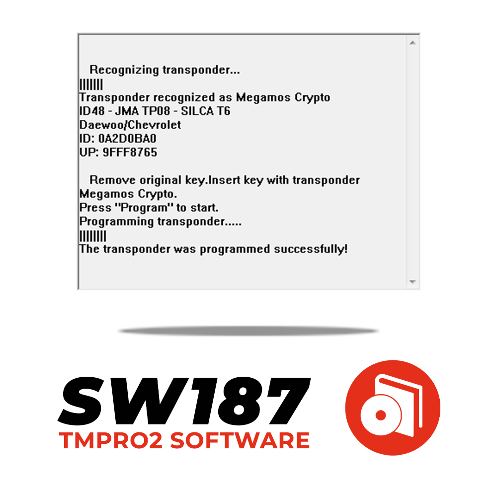 This software module can copy:– Daewoo and KIA ID48 keys.– All TS48 / CN6 / KD48 keys.Software writes on TS48 / CN6 / KD48 glass transponder.When original transponder is TS48 / CN6 / KD48 copying is 100% possible.When original transponder is ID48 cars that are possible to be copied are:Daewoo / Chevrolet: Aveo, Kalos, Lacetti, Spark, Tacuma, Lanos, Leganza, NubiraKIA: Carnival, Clarus, Pride, Sedona, Shuma, SportagePontiac: G3