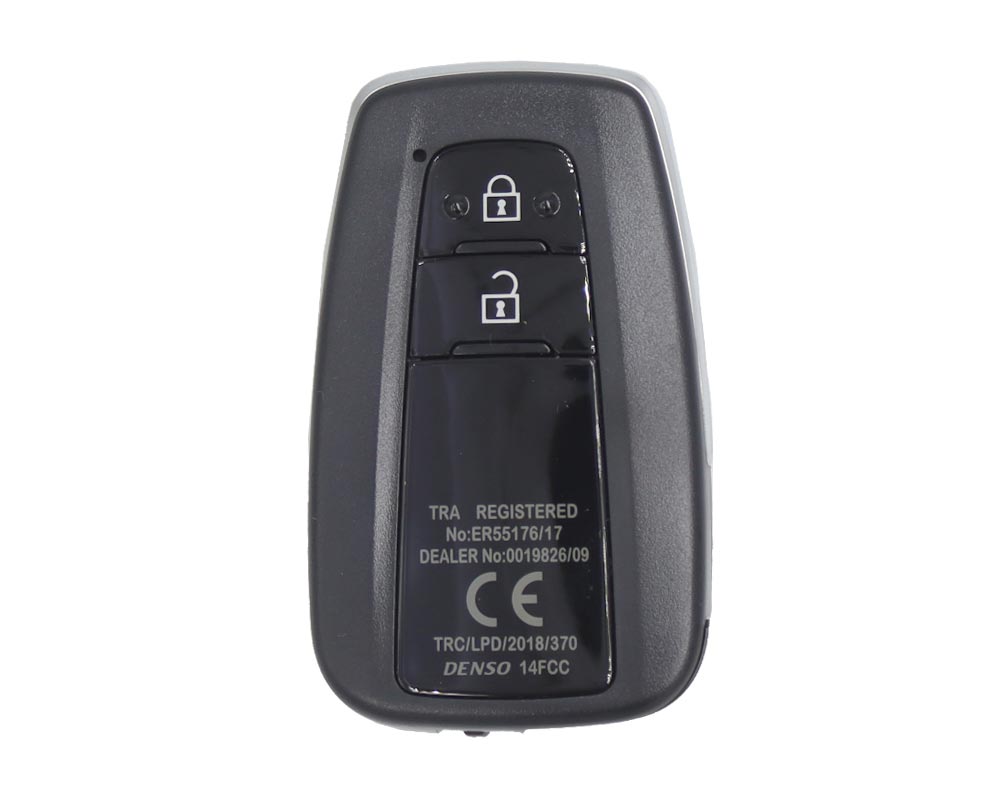 Manufacturer: Genuine / OEMOEM Part Number: 89904-60V50Buttons: 2Frequency: 433MHzColor: BlackCondition: Like NewCompatible Part Number: 89904-60V20 / 89904-6A300 / 89904-6A322 / 89904-6A250 / 89904-6A322Proximity / Smart / Keyless Go: YesFCC ID: 14FCCRemote Blade: Not IncludedPage 4: A9Transponder - ID: 8A Texas Crypto 128-bits AESBattery: CR2032Region / Market: Middle east & General & EuropePanic: NoUnlocked: Yes